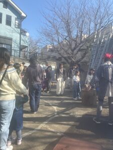 親子劇場の子供達、保護者の方と餅つきです。
